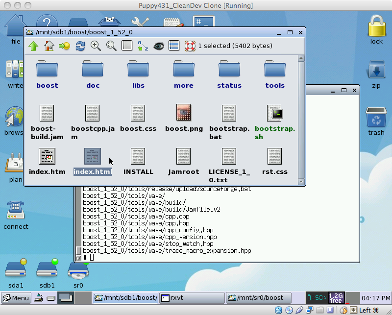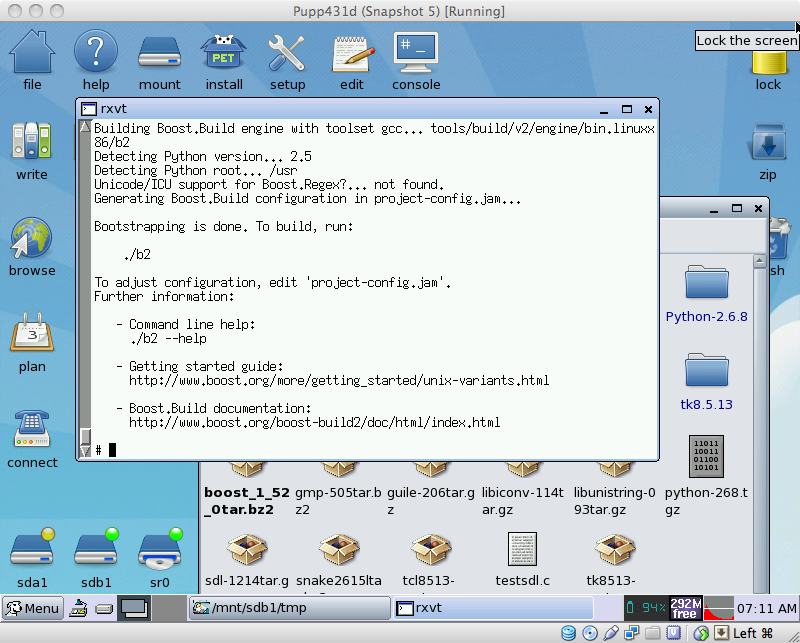 Copy this file into your source-code-building space and unpack it with tar xjvf boost_1_52_0tar.bz2, there are lots of files in there!